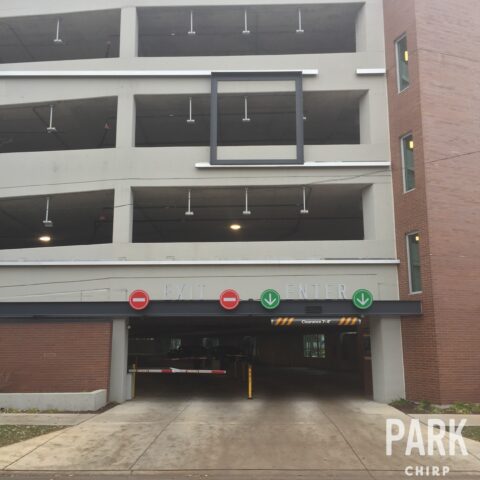 The garage entrance is located at 7331 N. Sheridan Rd. It is located on the east side of N. Sheridan Rd. between W. Chase Ave. and W Sherwin Ave.